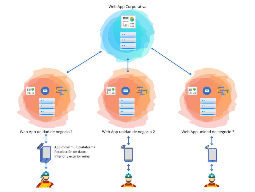 • Una aplicación móvil multiplataforma, en línea y fuera de línea, para recolectar datos en campo en el interior y exterior de la mina.
